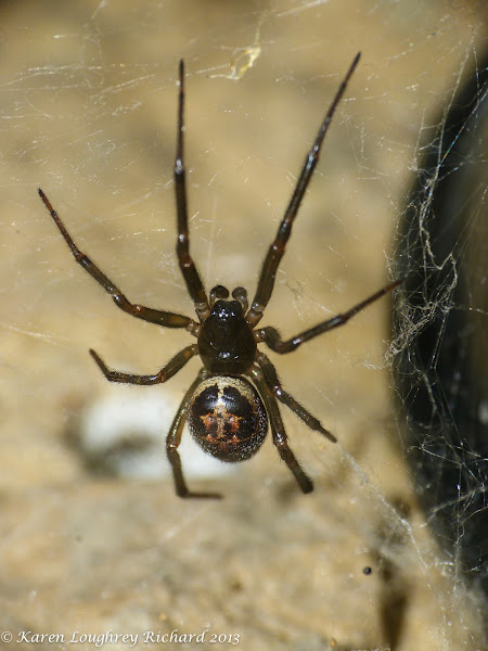 Male False Black Widow Spider - Steatoda grossa (False Black Widow) in Buena park ... / Females are larger than males and measure up to 15 millimetres while the males false black widow spiders construct a cobweb of an irregular tangle of sticky silken fibres.. Black widow spiders get their common name from the popular belief that the female eats the male after mating, a phenomenon which rarely happens in nature. Giant black widow spider cr 3. They are considered the most male and female black widows look different. An online resource devoted to north american insects, spiders and their kin, offering identification, images, and information. The easiest way to tell if a spider is a black widow is to look for the shiny black coloring and distinctive crimson markings on the abdomen of the females.