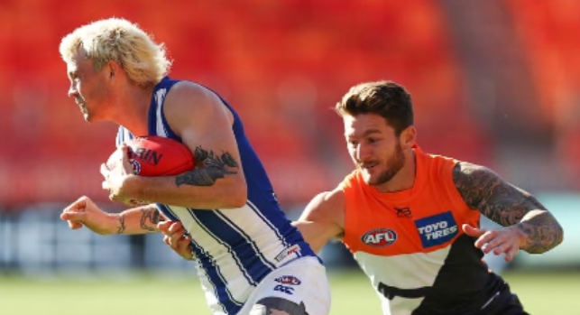North Melbourne Vs Gws Giants / Nick Haynes of the Giants is tackled by Jack Ziebell of ... : North melbourne last 5 gws giants last 5.. North melbourne kangaroos will host gws giants at blundstone arena in round 13 and will be looking to take full advantage of the home ground and crowd support. North melbourne 12.8 (80) def gws 8.12 (60) at giants stadium. What television channel is gws giants vs north melbourne on? Sunday afternoon footy kicks off at sydney olympic park as the gws giants take on the north melbourne kangaroos at giants stadium. You have come to the philippines edition, for other espn editions, click here.