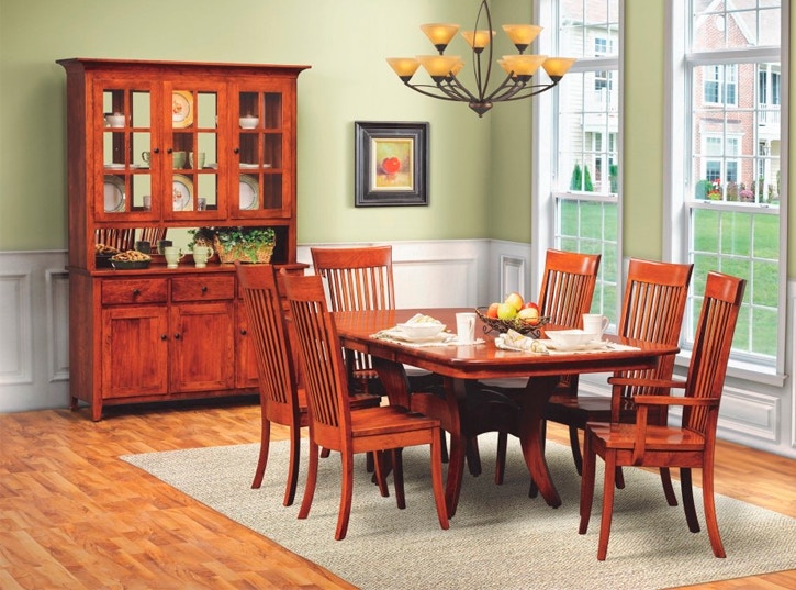 Clean, classic lines allow the woodgrain to shine through a rich colored stain. By making the table narrow we can still add many of the functions like a geared slide and self store options. We offer casual and formal amish dining room sets, with traditional, modern, mission and rustic styles. From trestle tables to pedestal tables, we're proud to offer a variety of elegant amish dining room tables made in the usa. We offer solid wood furniture handcrafted by amish families directly to your family at very affordable prices.